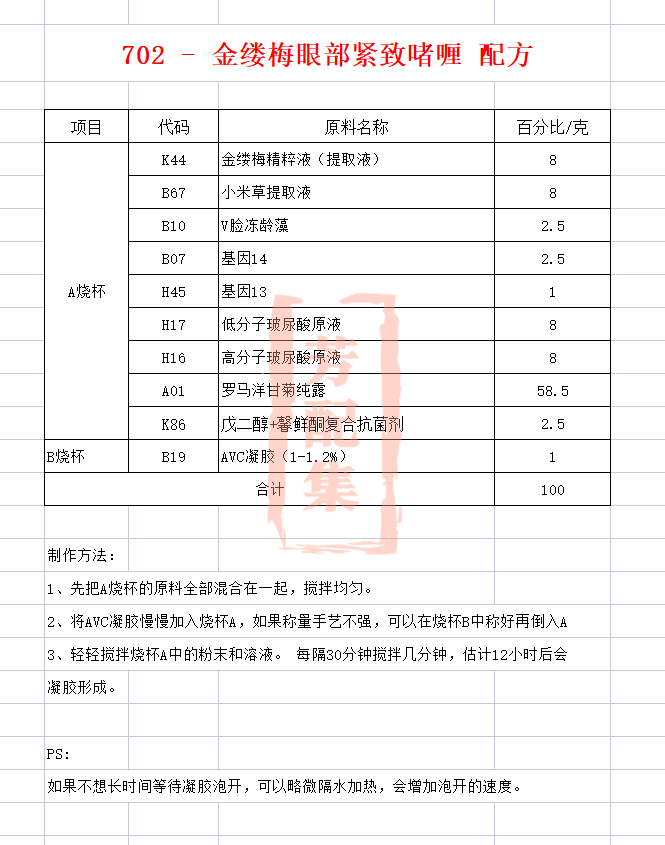 配方名称:702-金缕梅眼部紧致啫喱