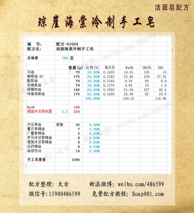 配方名称:p01034-琼崖海棠修复皂