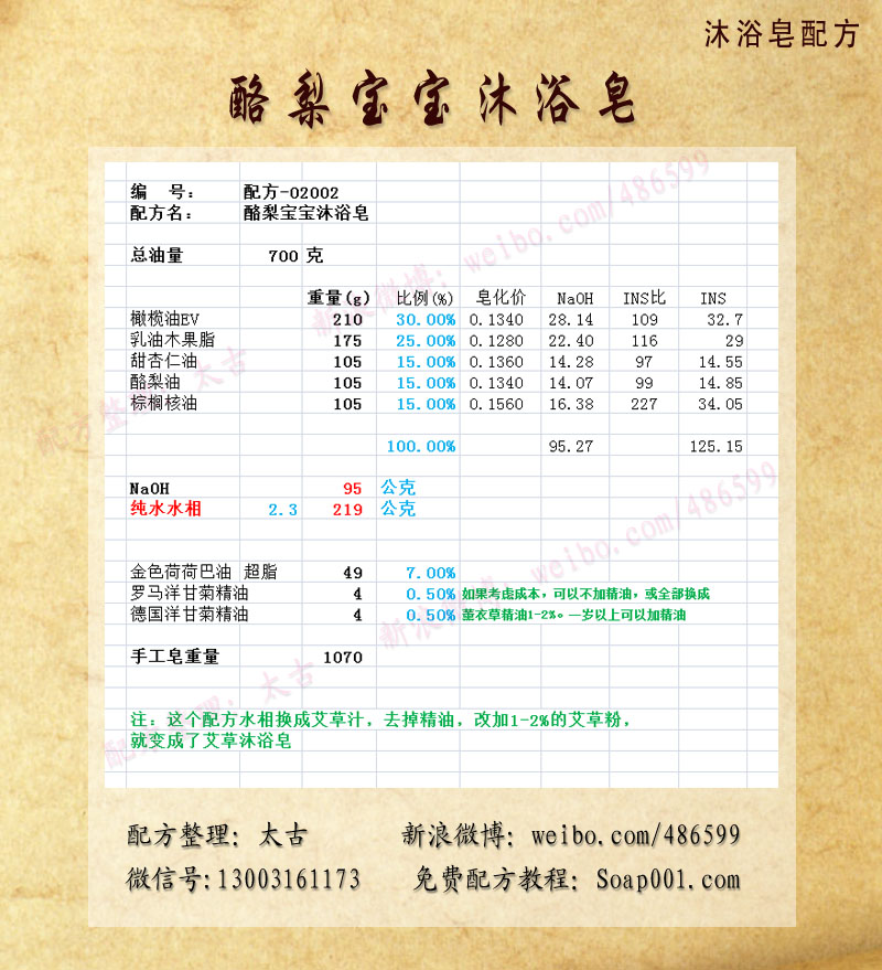 配方名称:p02002-酪梨宝宝沐浴皂