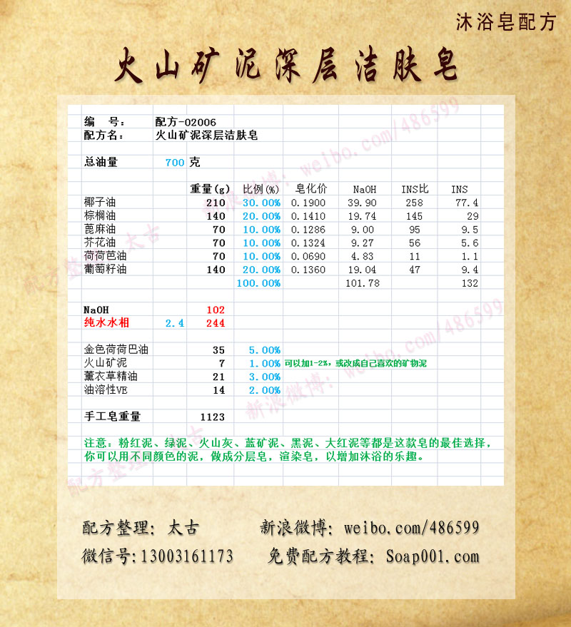 配方名称:p02006-火山矿泥深层洁肤皂