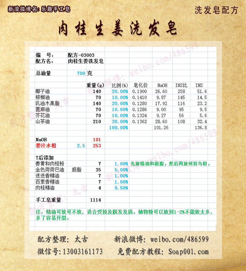 配方名称:p03003-肉桂姜生发皂