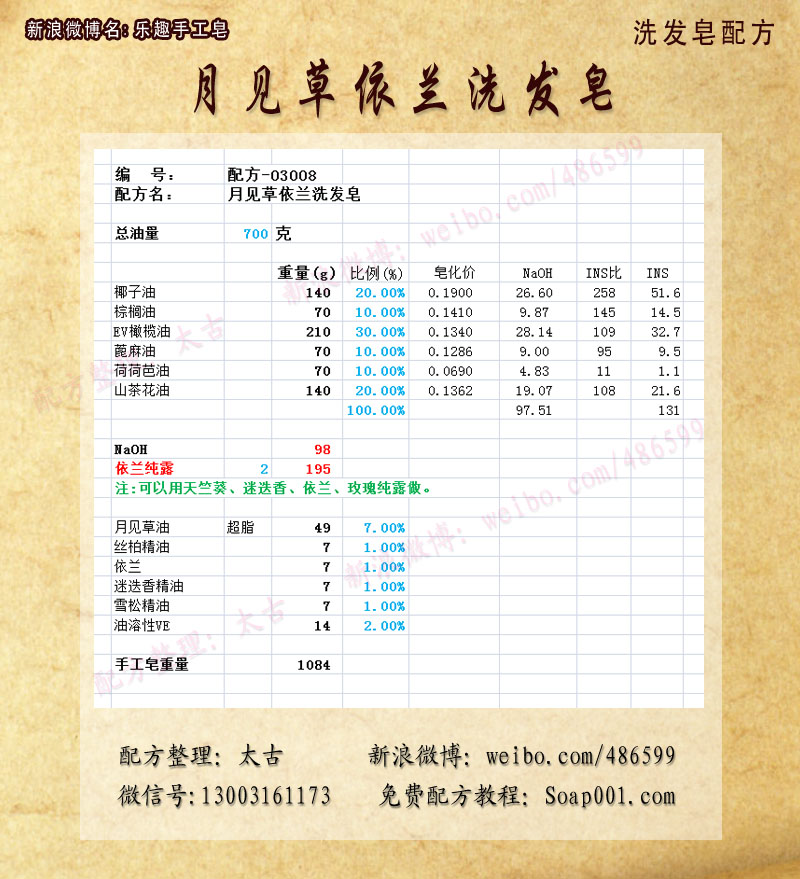 配方名称:p03008-月见草依兰洗发皂