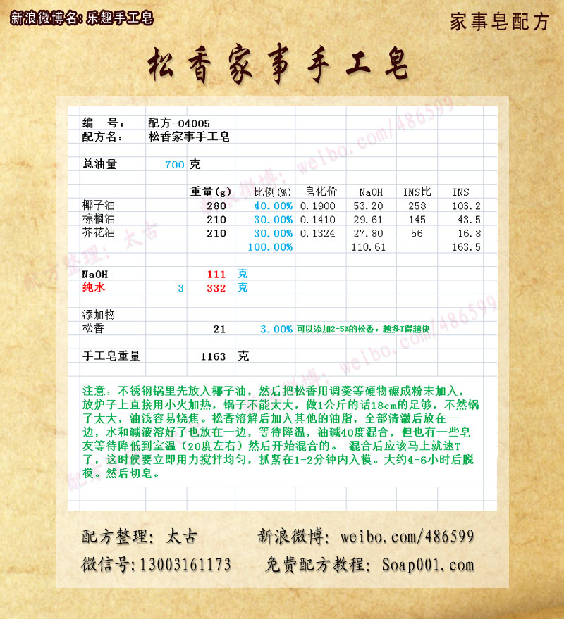 配方名称:p04005-松香家事皂