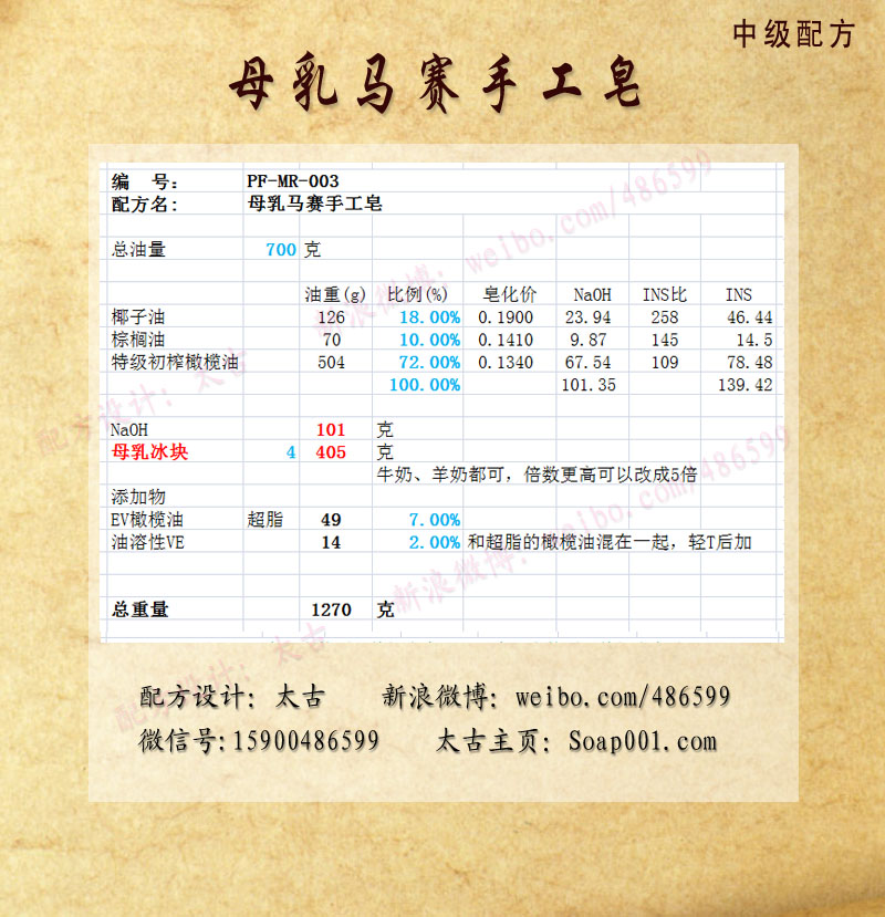 配方名称:p05003-母乳马赛皂