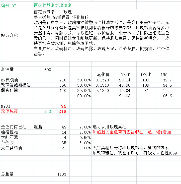 配方名称:p06005-百草养颜皂-玫瑰皂