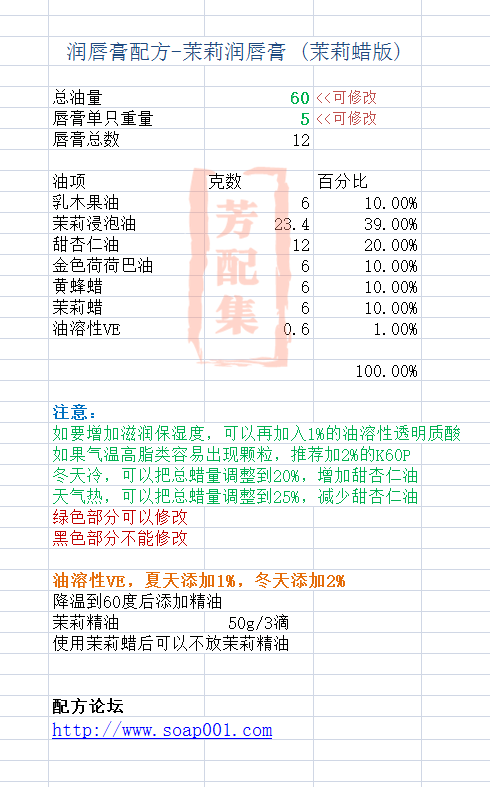 配方名称:r301-茉莉润唇膏(茉莉蜡版)
