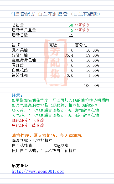 配方名称:r304-白兰花润唇膏(白兰花蜡版)