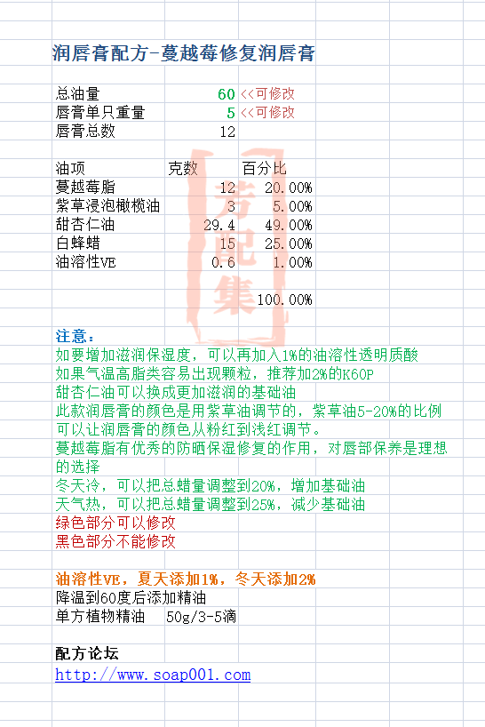 配方所属:润唇膏 - 脂类配方