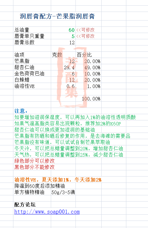 配方名称:r409-芒果脂润唇膏