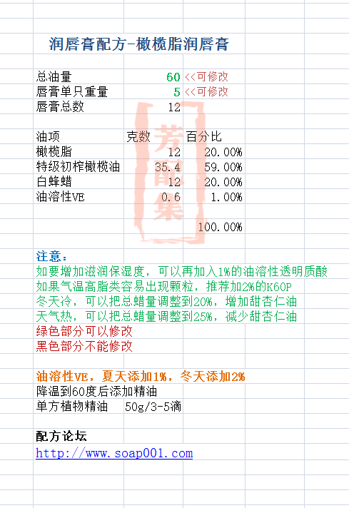 配方所属:润唇膏 - 脂类配方