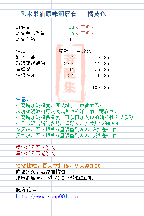 配方名称:r601-乳木果油润唇膏-橘黄色