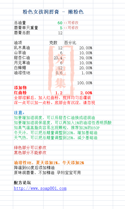 配方所属:润唇膏 - 彩色配方