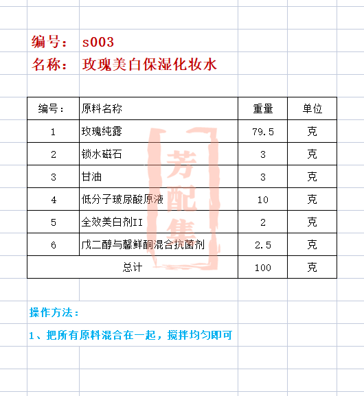 配方名称:s03-玫瑰保湿化妆水